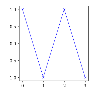 'bx-'のように同時に指定する.この場合は青のマーカー'x'をプロットし,それらを実線で結ぶ.